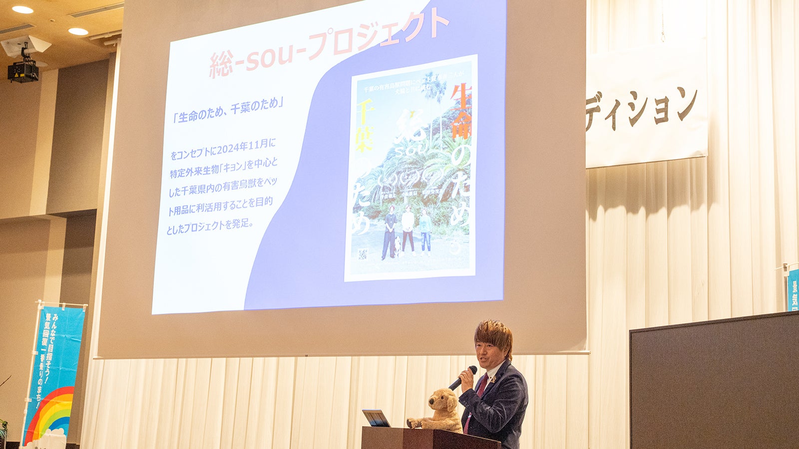 準グランプリには、ペット用品開発を手がけるunodue株式会社の小坂邊信さんが選ばれました。千葉県内で問題となっている特定外来生物「キョン」をペットフードにする事業を起点に、全国の特定外来生物をペットフードにする野心的な事業プランを提案し、生物の命をつなげつつ獣害を減らす内容に関心が集まりました。