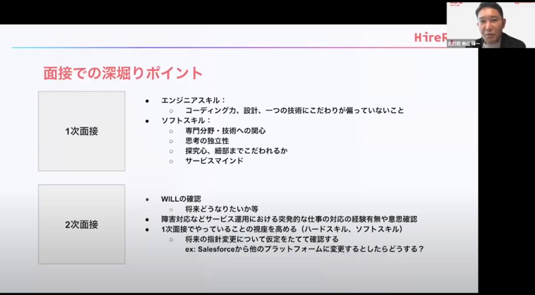 優秀なエンジニアの定義に続いて、出前館の面接における深堀ポイントについて解説がありました。
