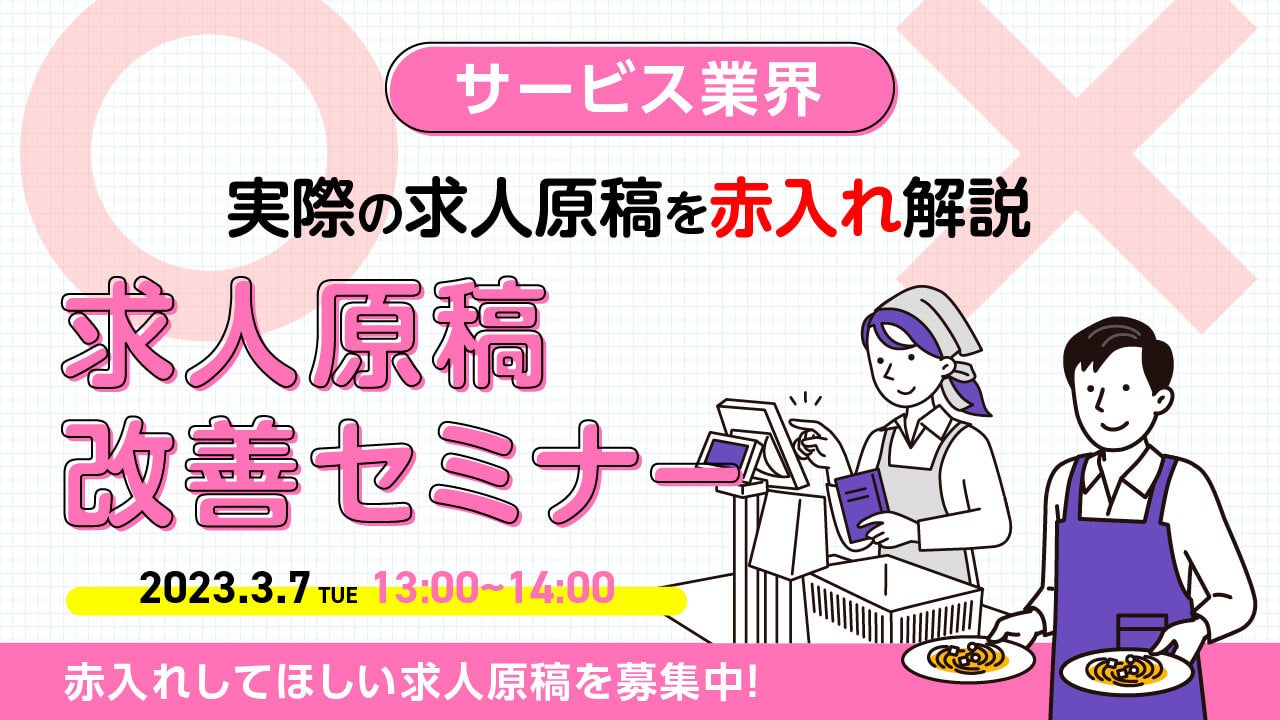 【社員採用担当者向け】人手不足に悩むサービス業界の求人広告改善セミナー!母集団形成をはかるべく、実際の原稿をリアルタイムに赤入れ解説