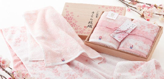 この春、節目を迎える大切な方への贈り物は木箱入りの記憶に残る今治産タオルをお贈りください。今治謹製ではこの時期に相応しい、桜の花びらから採った染料で上品な桜色に染め上げた『さくら紋織』や上質な綿を使った『極上タオル』 をそろえています。この機会に今治謹製の上質な今治産タオルを贈りませんか?