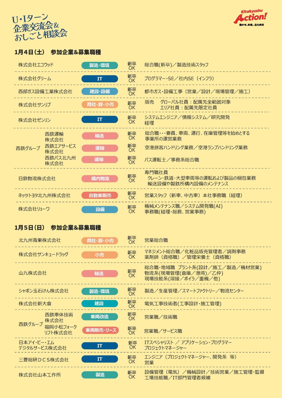 ■1月4日(土)参加予定企業