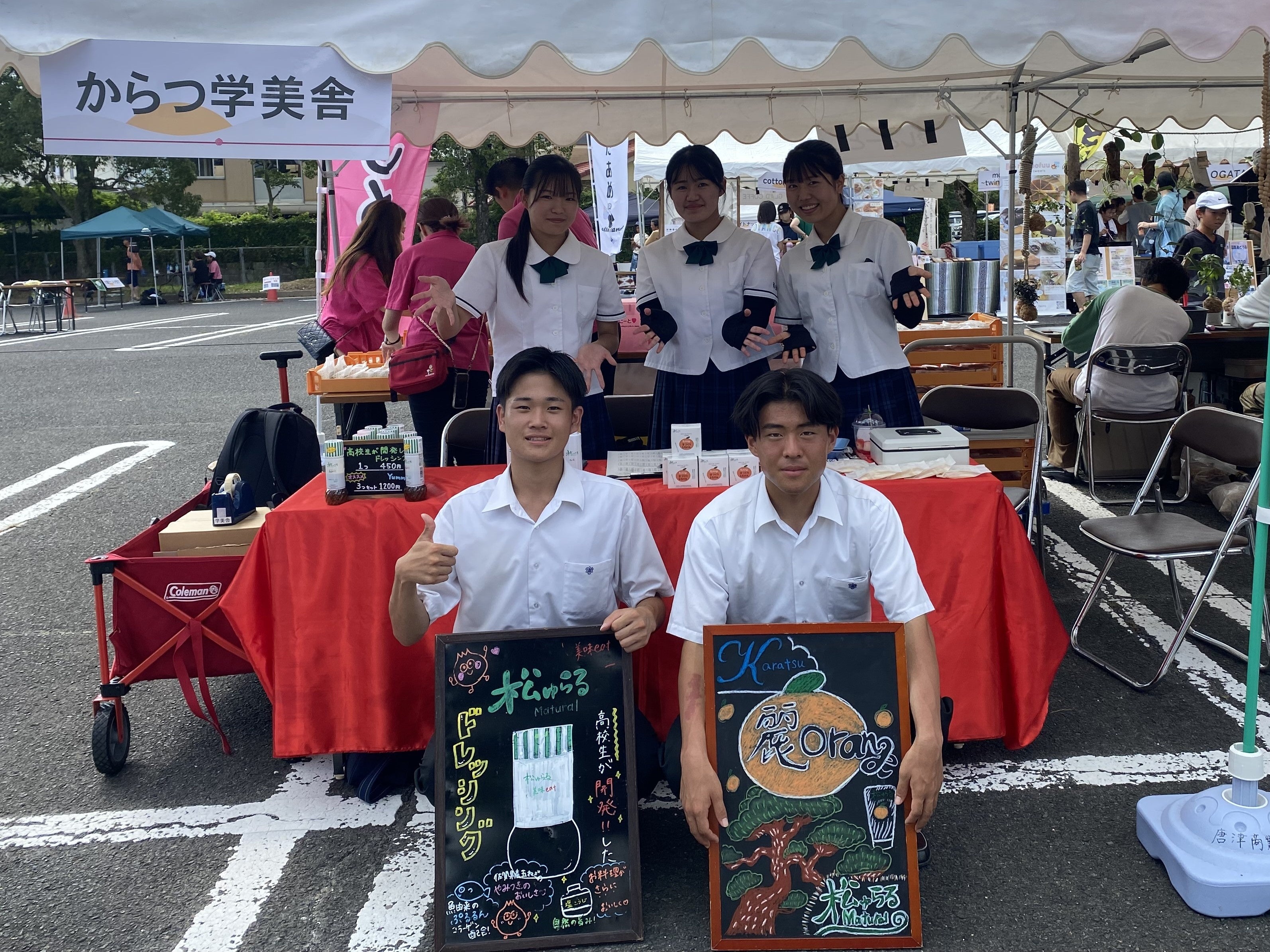 今回は、「松ゅらる」ブランドとして高校生が開発し、全国商業高校フードグランプリで審査員特別賞を受賞した大ヒット商品「美味eat」(ドレッシング)をはじめ、加唐島の椿オイルを配合した「麗Orange」(洗顔石けん)、松エキス配合の「Pine滴」(化粧水)など、地元の素材を活かした商品を特別価格で販売します。