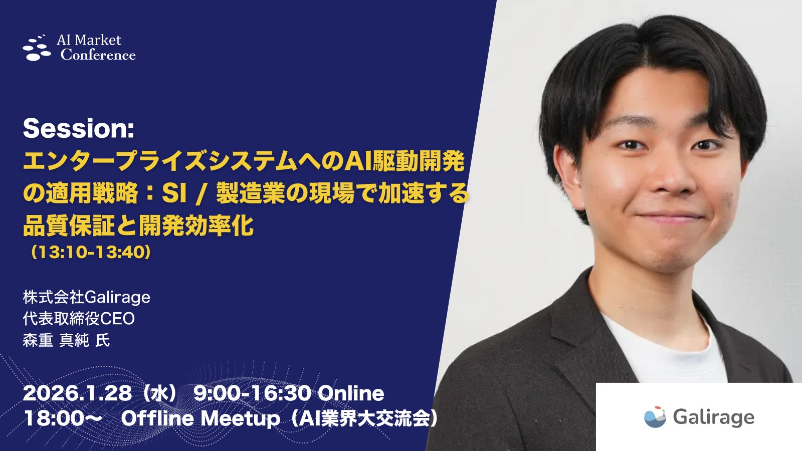 【登壇情報】Galirage社による「エンタープライズシステムへのAI駆動開発の適用戦略:SI / 製造業の現場で加速する品質保証と開発効率化」|1.28|AI Market Conference