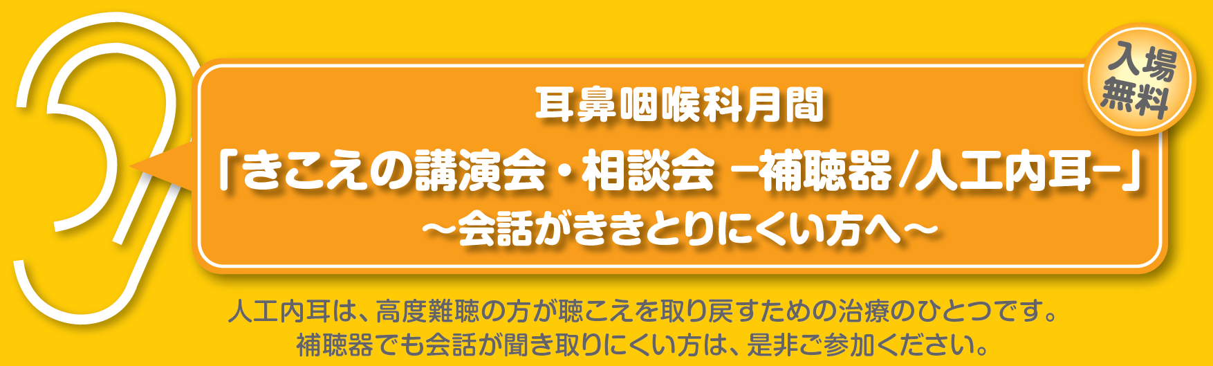 3月29日 徳島市 市民公開講座 耳鼻咽喉科月間「きこえの講演会・相談会 -補聴器/人工内耳-」~会話がききとりにくい方へ~