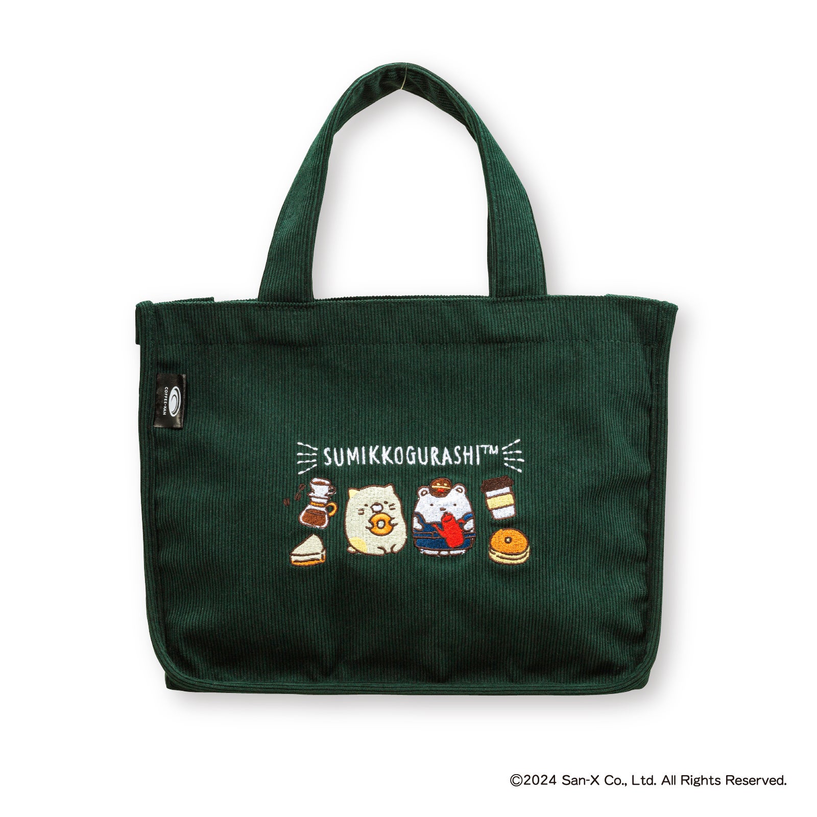 ▪厚手なコーデュロイ生地のトートバッグには、可愛らしいすみっコたちの刺繍入り!