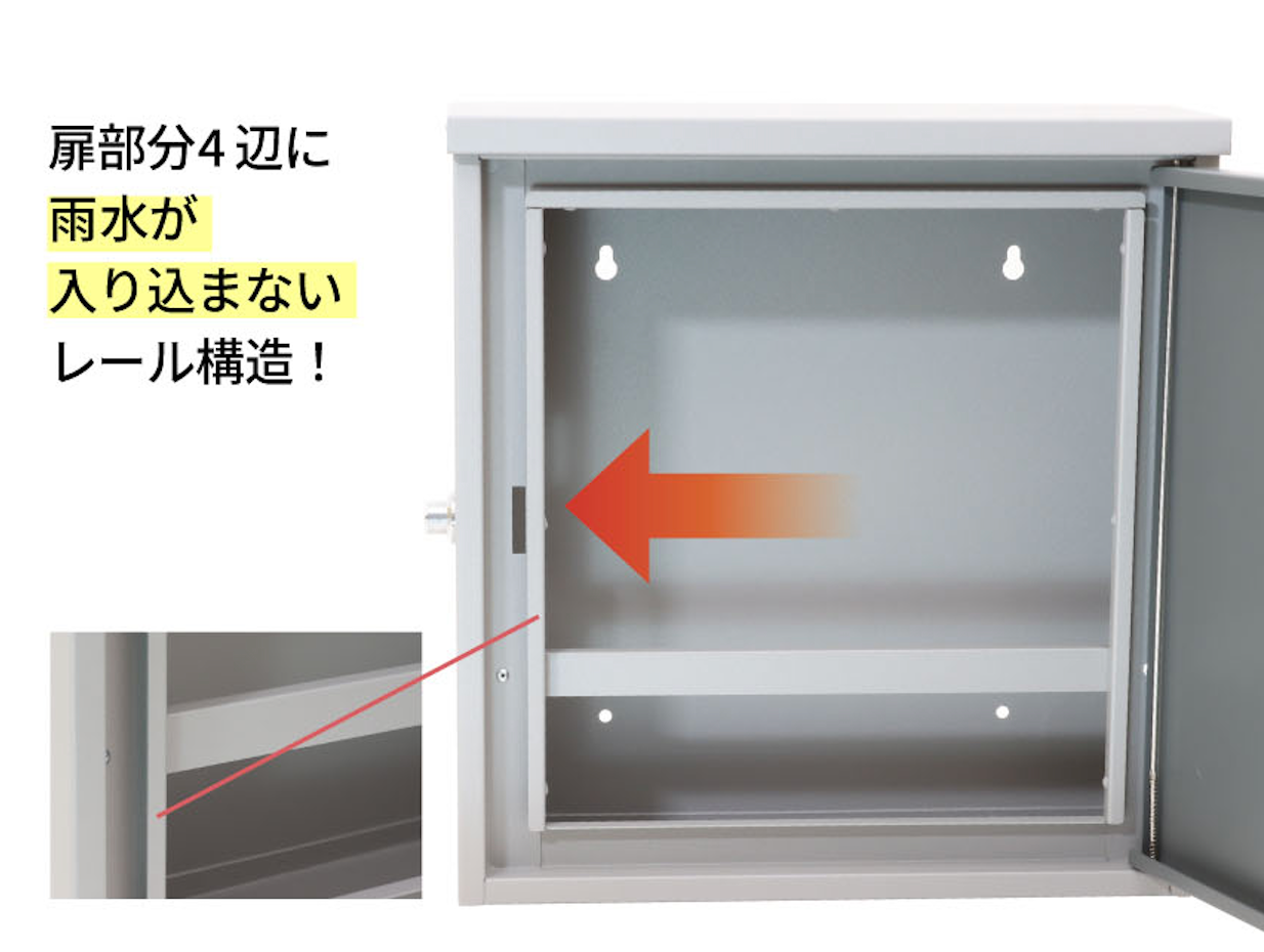 取出し口の四辺には雨が侵入しにくいレール構造が設けられ、防水性と防塵性も確保しています。