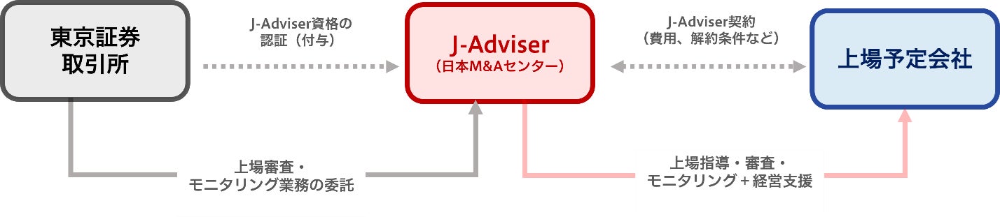 TOKYO PRO Marketは東京証券取引所が運営する特定投資家等向けの株式市場として2009年に誕生しました。2021年には上場数が過去最高の13社を記録し、2022年4月の東証市場再編によりさらに注目度が高まっている市場です。TOKYO PRO Market上場にはJ-Adviserを1社選定し、契約を締結する必要があり、J-Adviserは担当企業が同市場へ上場するための上場指導・審査・モニタリングを行うとともに、上場後の成長を二人三脚で実現するパートナーとして支援します。現在は13社がJ-Adviserに認定されており、日本M&Aセンターは2019年7月にJ-Adviser資格を取得しました。
