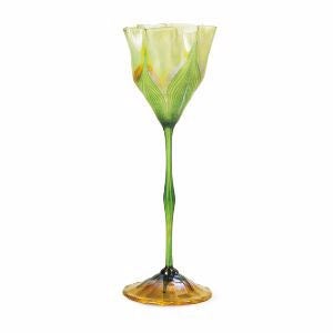 19世紀パリ万博に出展されたティファニーのグラス花器と同デザインの希少品は、32万円からスタート。ライブビットと会場の競りが続き、74万円の落札結果となりました。