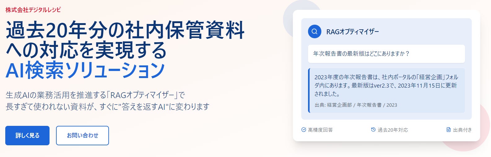 株式会社デジタルレシピ、生成AIの業務活用を推進する『RAGオプティマイザー』を正式リリース