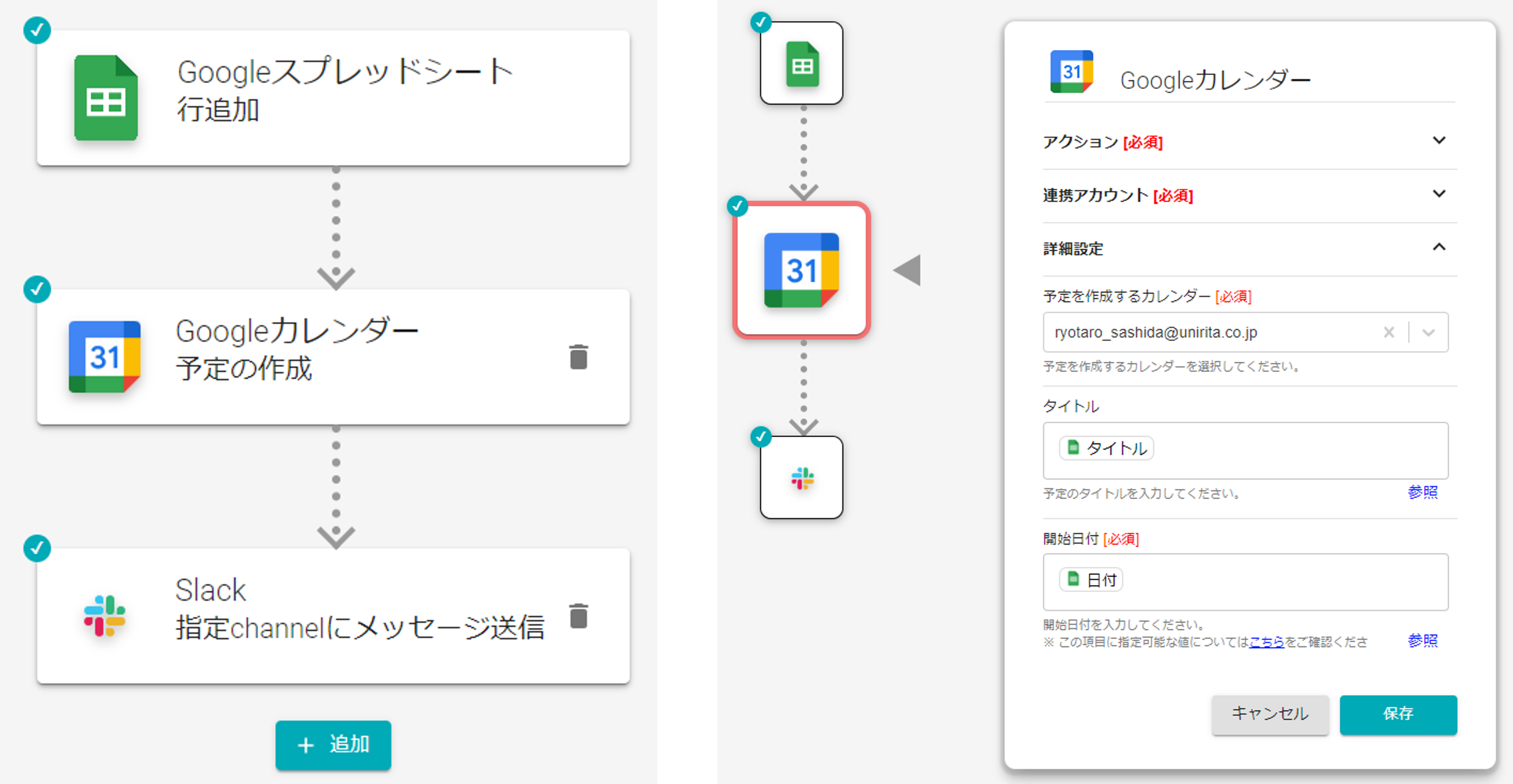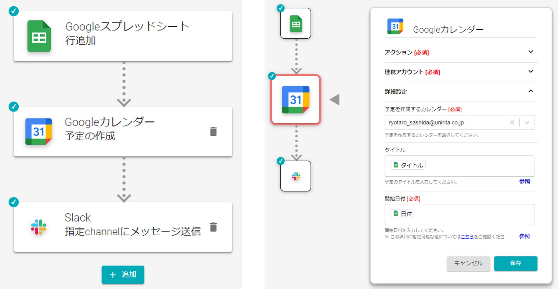 ●「Google スプレッドシート」にイベント情報が記載されたら「Google カレンダー」に予定を追加する