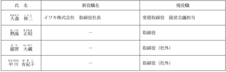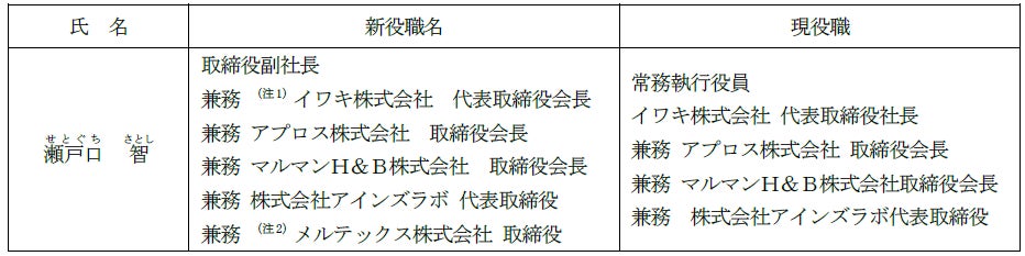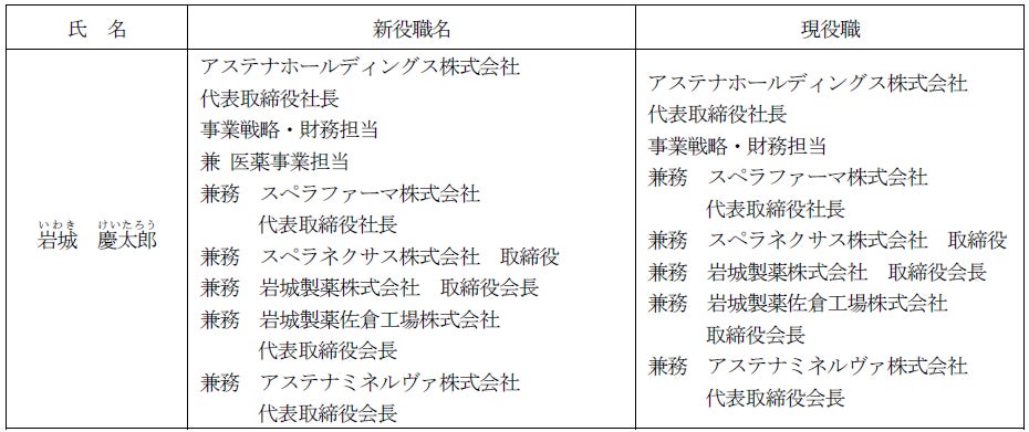 アステナホールディングス株式会社(本社:東京都中央区、代表取締役社長:岩城 慶太郎、証券コード:8095)は、2023年1月13日開催の取締役会において、下記のとおり、役員の異動等について内定いたしましたのでお知らせいたします。