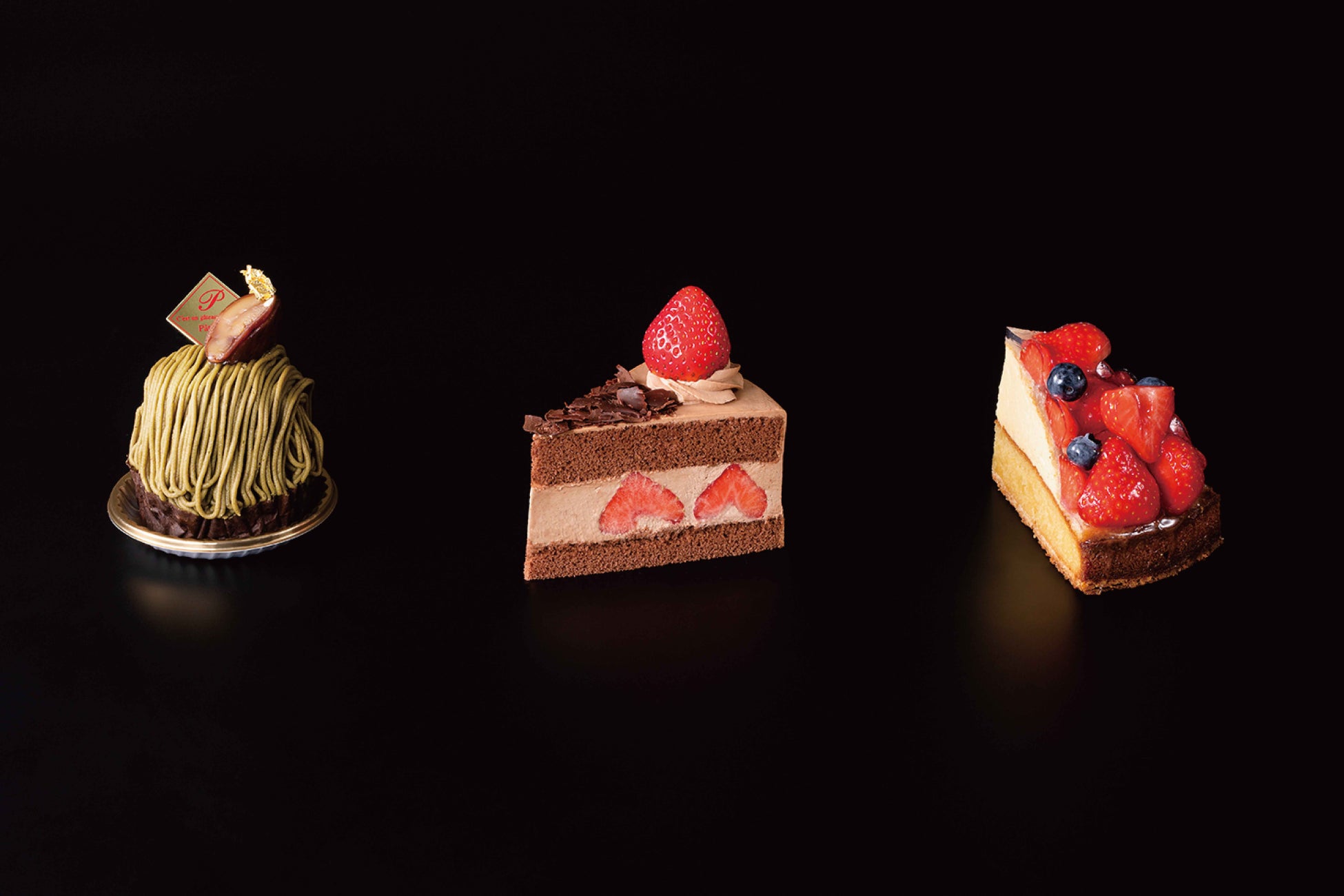 ◇イートイン料金:高尾山フロマージュ728円、いちごのチョコレートショートケーキ784円、いちごのタルトケーキ784円ほか