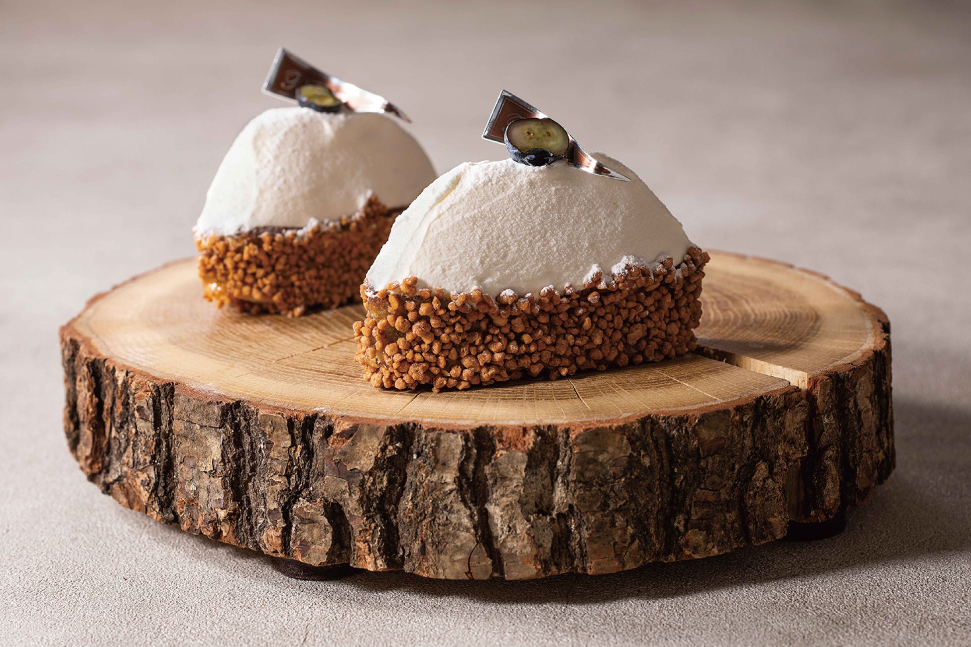 <ロビーラウンジ>で人気を誇る「アフタヌーンティー」の一番の魅力は、パティシエがつくる選べるピースケーキです。通常ケーキセットやテイクアウト商品として販売している約10種のピースケーキからお好みのものが月替わりでお選びいただけることから、ご友人と別々のものを注文しシェアすることも可能となっております。1月2月の選べるケーキには、口当たり軽やかなチョコレート生クリームを使用したいちごのチョコレートショートケーキをはじめ、濃厚カスタードと甘酸っぱいいちごの酸味が絶妙ないちごのフルーツタルトや抹茶のモンブランもラインナップいたします。その他、パティシエの新作として、ブルーベリー入りのレアチーズとアーモンドクリームが溶け合う、雪の高尾山をイメージしたスイーツも販売いたします。なくなり次第終了のため、お好みのケーキがある場合は事前のご予約をおすすめいたします。