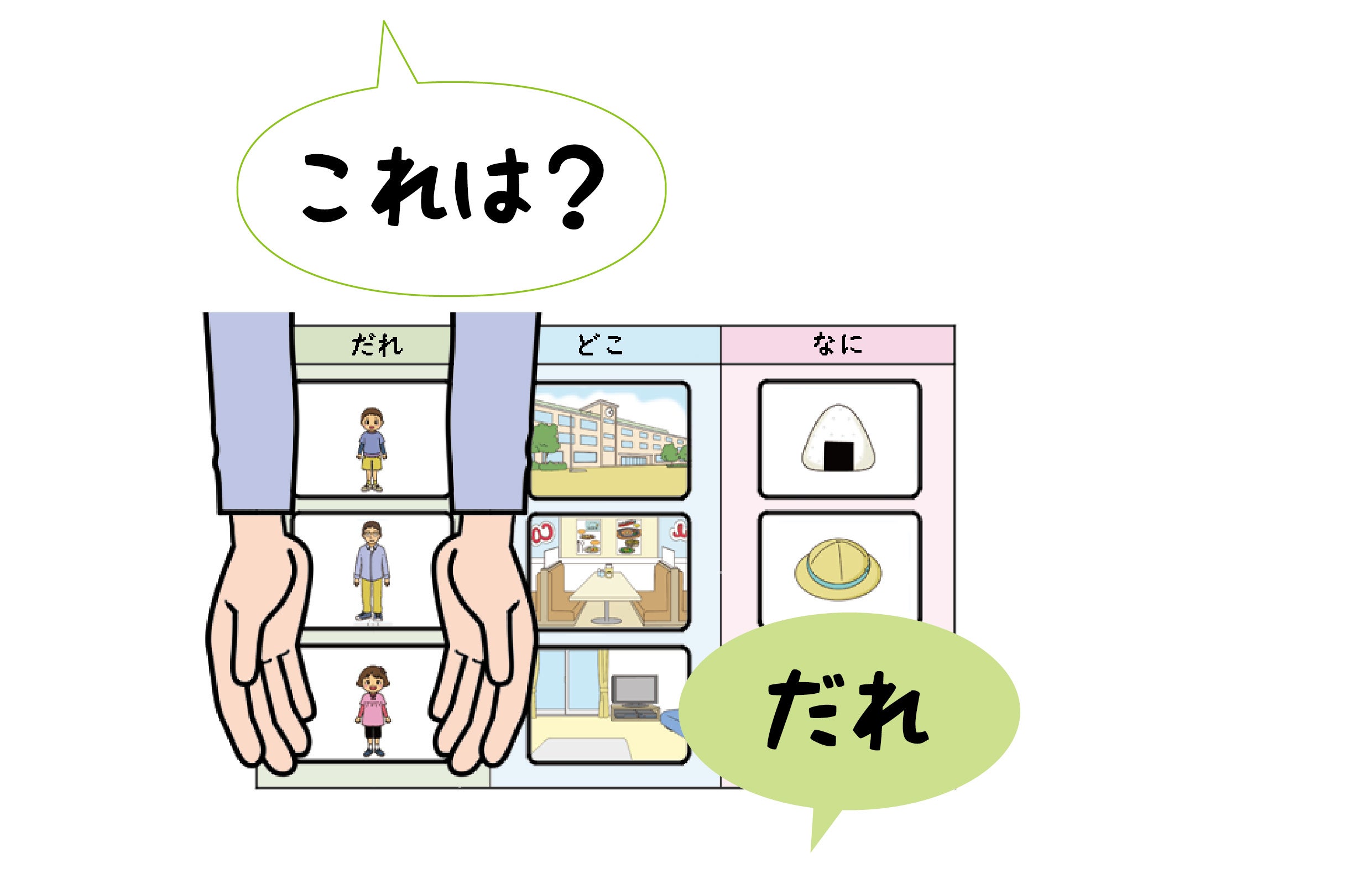 だれ→どこ→なにの順番で数回繰り返し、徐々に答えを指差すというヒントをなくします。