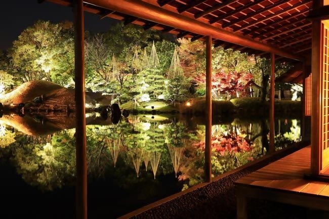 11月1日から、福井市の「名勝 養浩館庭園」でライトアップが始まっています。10月中旬ごろから、庭園内の様々な樹木の紅葉が徐々に始まり、11月上旬から12月上旬までヤマモミジやドウダンツツジなどが見頃を迎えます。時期によっては紅葉と雪吊りを同時に楽しむこともできます。