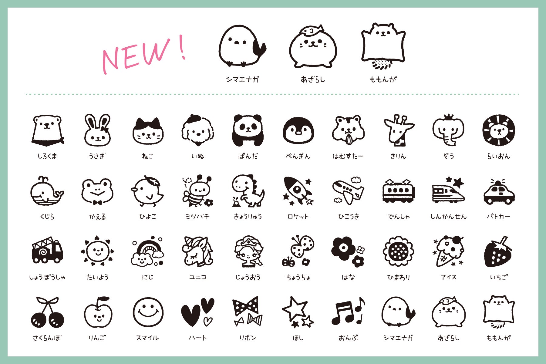 SNSでも人気の“シマエナガ・あざらし・ももんが”の3種類が新登場。お名前の横にちょこんと押すだけで、文字の読めないお子さまでも「自分のもの」がひと目でわかる可愛いワンポイントとなります。