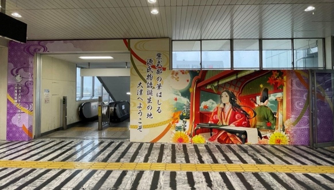 唐々煙氏描き下ろしイラストを活用した大河ドラマ「光る君へ」PR看板をJR石山駅に設置しました!