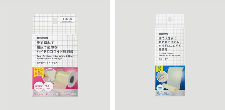 モイストヒーリング(湿潤療法)のシェア拡大の中で、2024年7月24日(水)に発売したくらしWelcia「傷を早くきれいに治すパッド(ハイドロコロイド絆創膏)」に加え、傷の大きさに合わせてカットして使用できるロールタイプの絆創膏2種を開発しました。