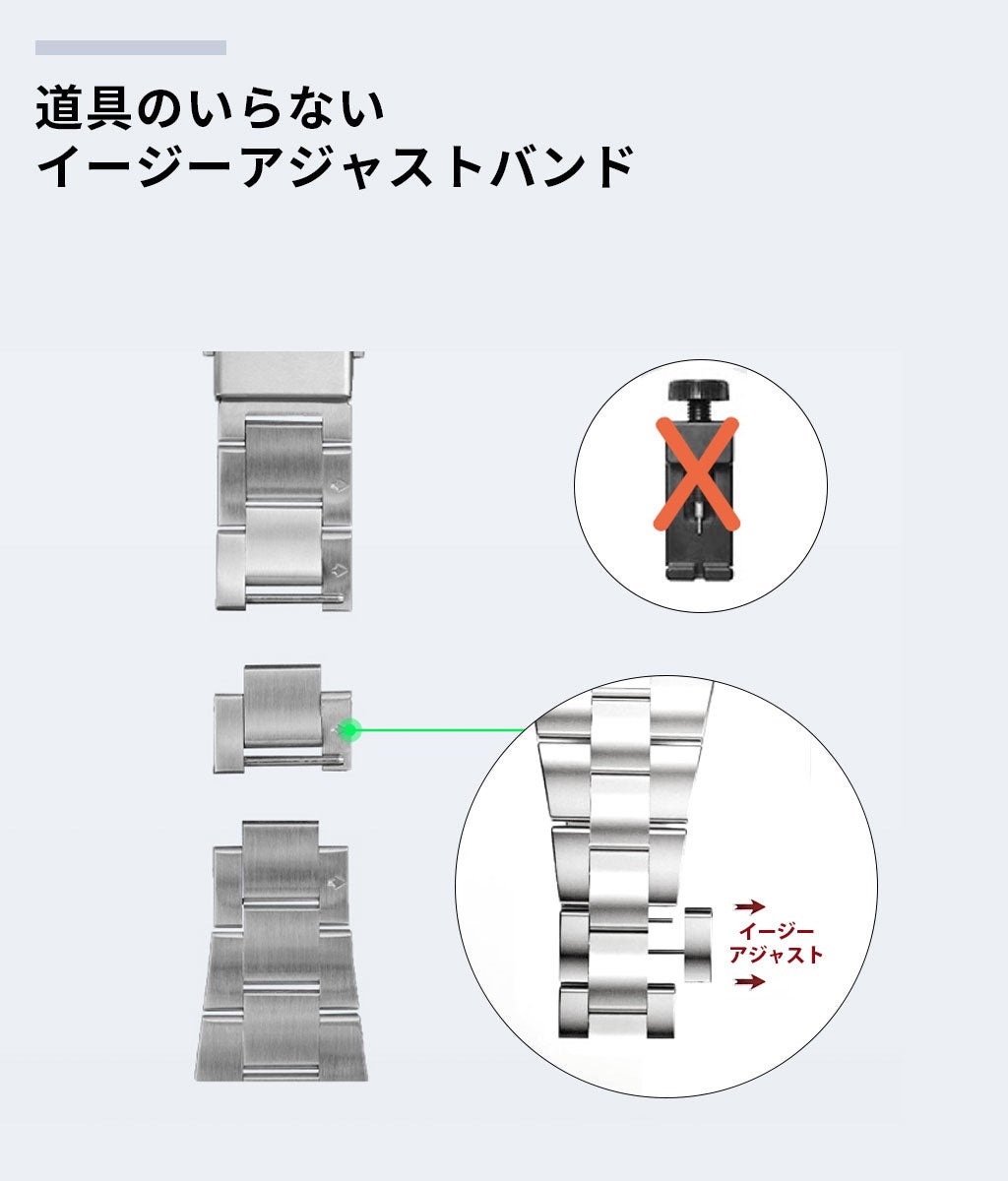 TF7、道具いらずで楽々サイズ調整、Apple Watch専用「イージーアジャストメタルバンド」発売