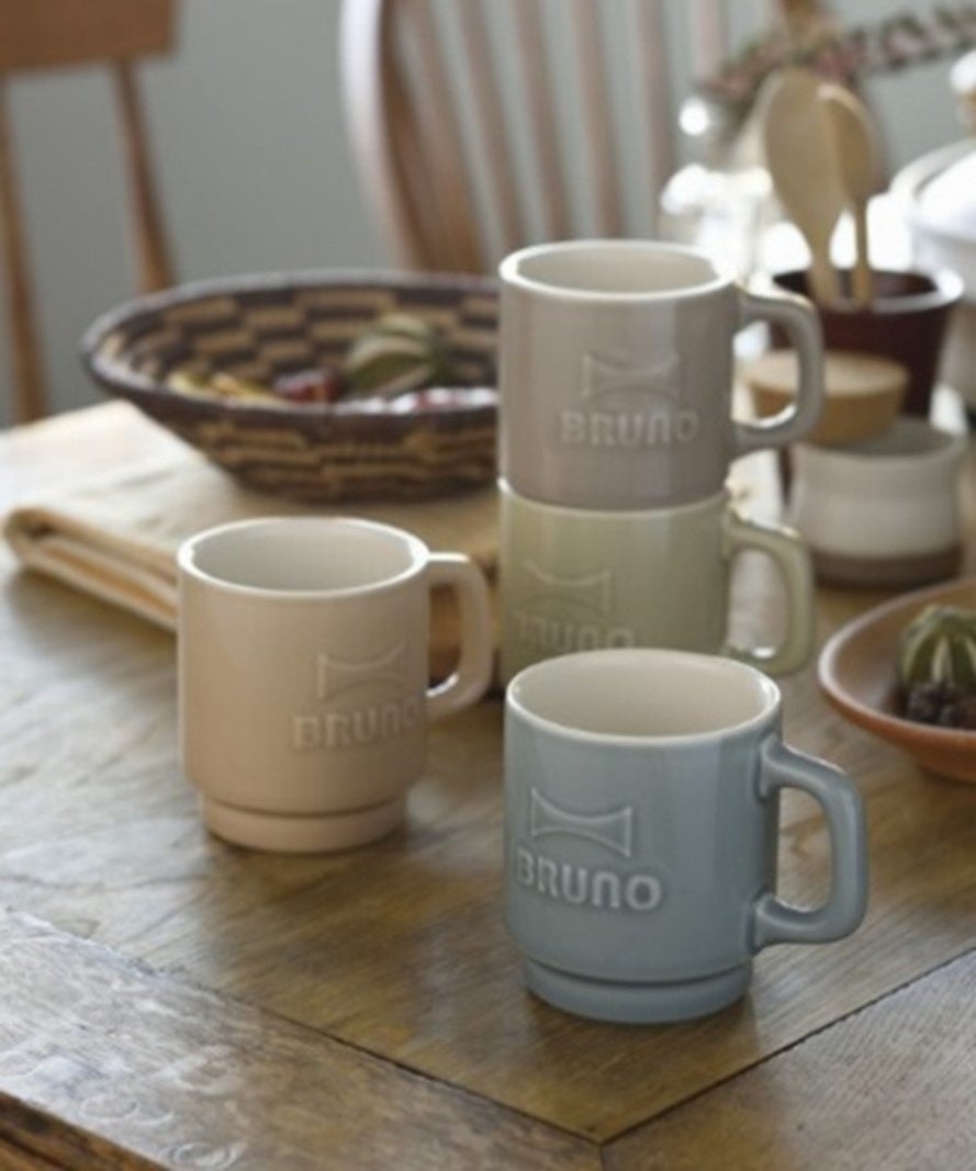 BRUNOの大きなエンボスロゴとニュアンスカラーがかわいいマグカップ。大きめサイズでゆっくりとドリンクを愉しめるので、おうち時間にぴったり。
