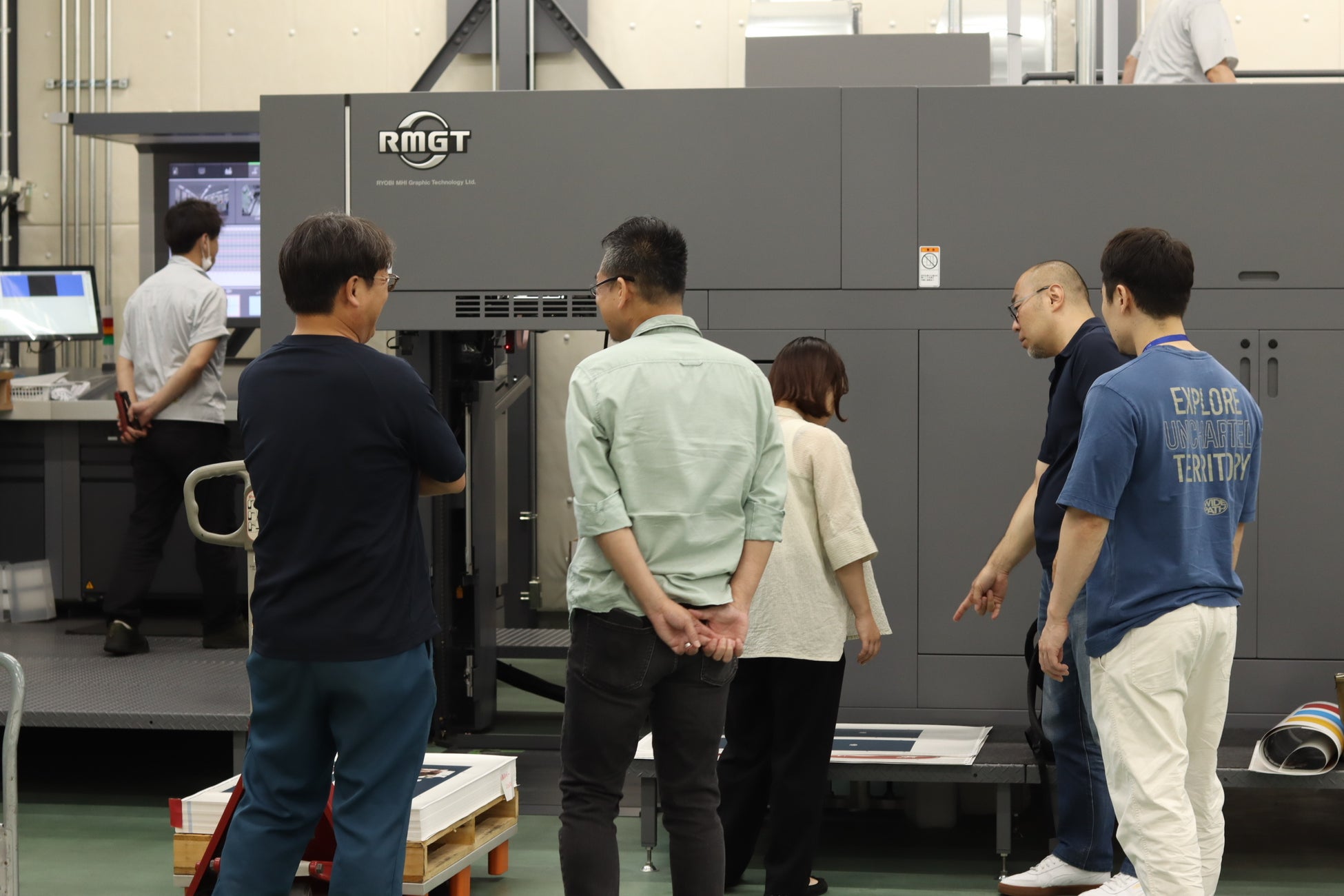 ブックカバーのアイデアが生まれたきっかけは、2024年3月19日に始動した「新型枚葉機」の印刷現場をグラフィックデザイナーが見学したときのこと。高速オフセットが「多ページのカタログや冊子印刷が得意」ということを印刷オペレーターから聞き、「あえて重たい多ページものの雑誌が作れないか」と考えたのがはじまりです。