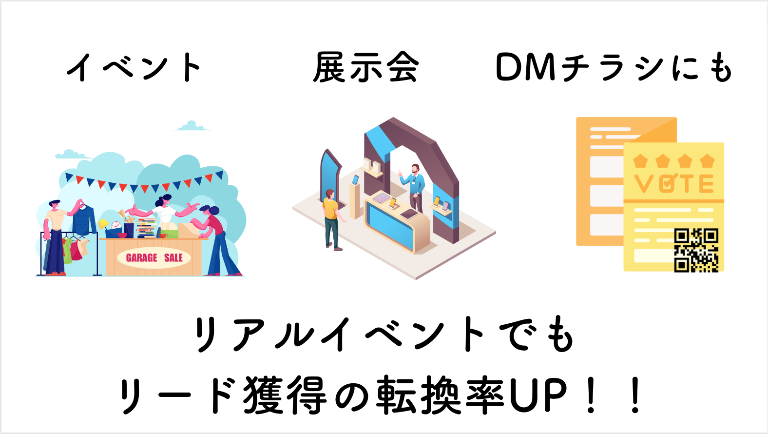 白江:EXPOなどリアルイベントに出展する機会がある企業は活用したほうがいいと思います。先日、DX EXPOに行ったのですが、単にチラシを配るだけだとお客様の足を止めにくいのが課題だと思います。そこで、足を止めてもらう施策としてガチャや診断を導入することで、リード獲得にも有効だと感じましたね。