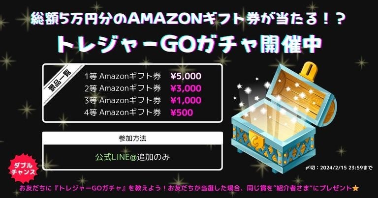 トレジャーGOのユーザー獲得のために、アマゾンギフト券プレゼントガチャを実施しています。