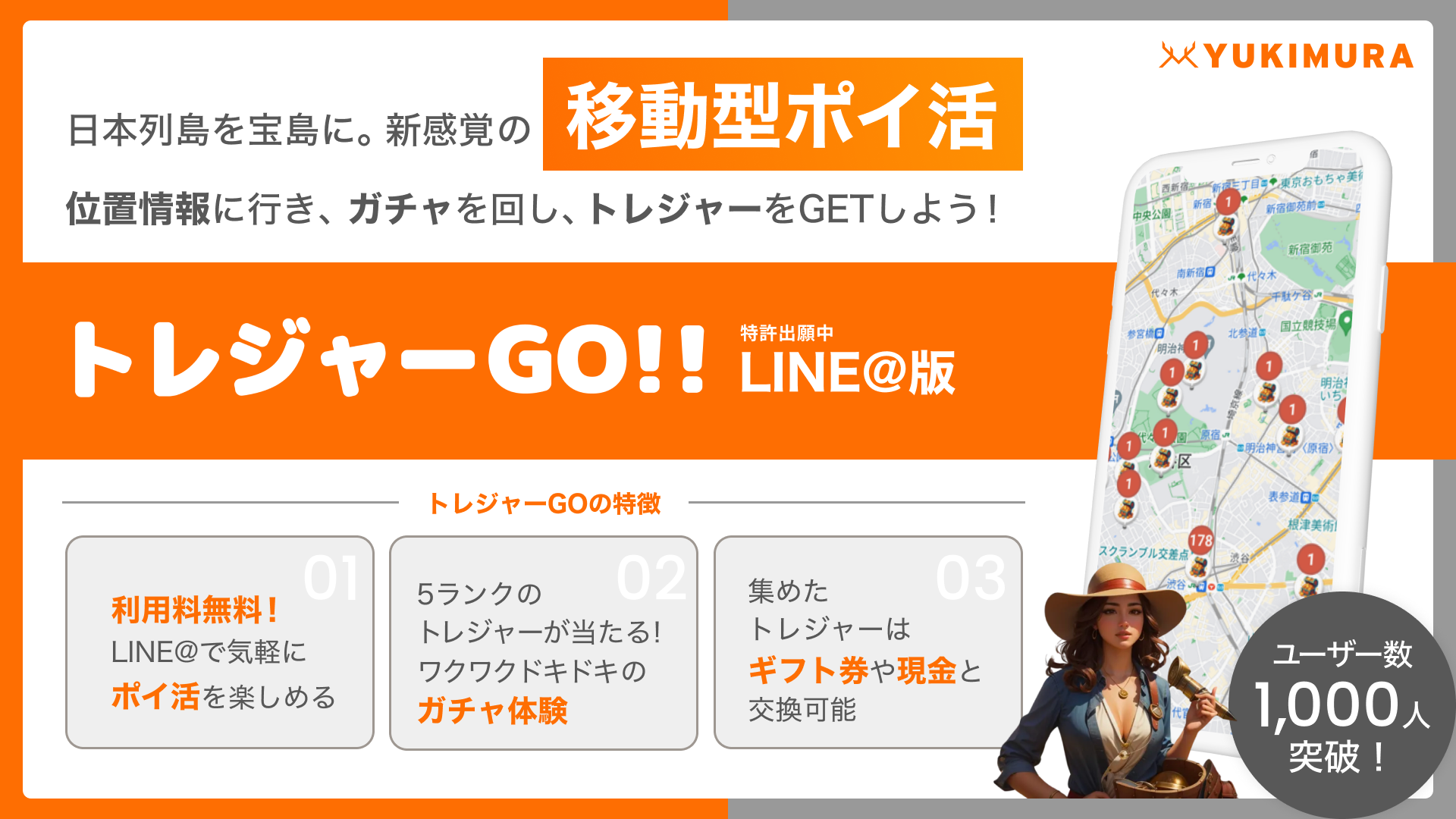 白江:株式会社YUKIMURAでは「位置情報×デジタルグッズ」を活用した次世代のエンターテイメントを創造しています。ブロックチェーンを活用したデジタルグッズ配布基盤を生かしたガチャイベントプラットフォーム事業「トレジャーGO」も展開しています。