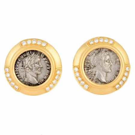 ブルガリ(BVLGARI) モネーテ イヤリング K18 ダイヤモンド アンティークコイン