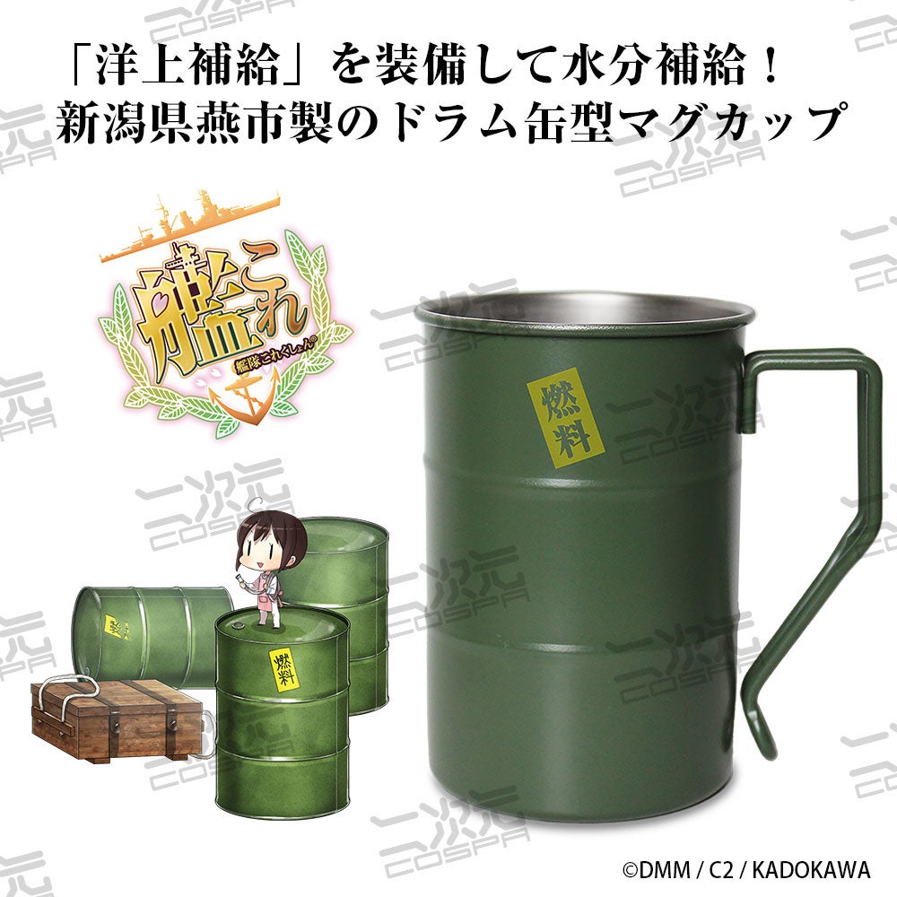 ・「洋上補給」ドラム缶をモチーフにしたステンレス製の塗装マグカップ。