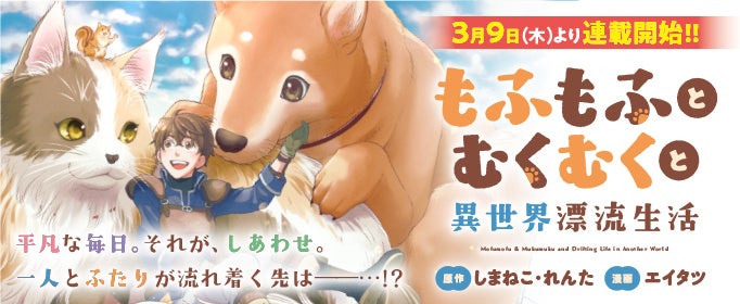 『もふもふとむくむくと異世界漂流生活』コミック版の連載が本日3月9日(木)18時より開始となりました。