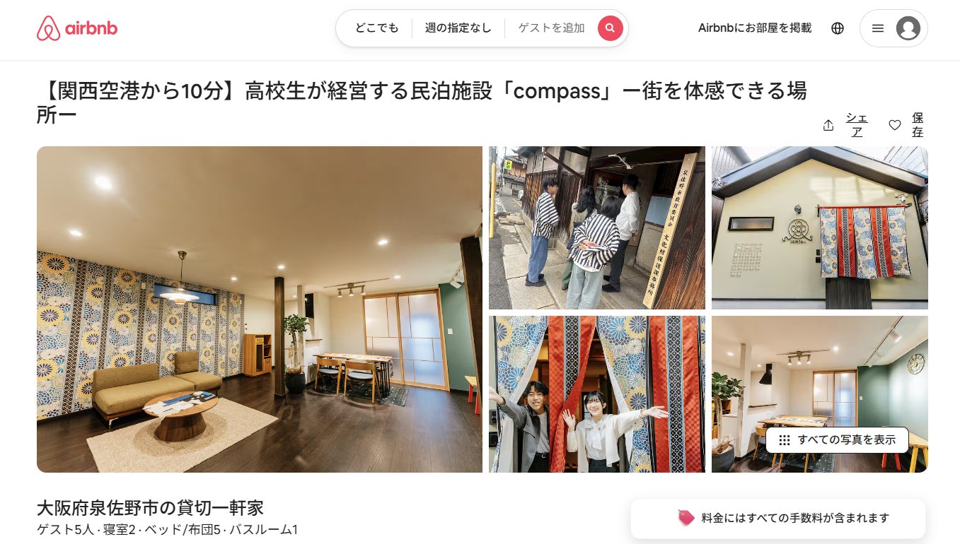 【大阪府泉佐野市】フリースクールの高校生が経営する民泊「compass」ついにオープン!≪Airbnbで予約受付中≫
