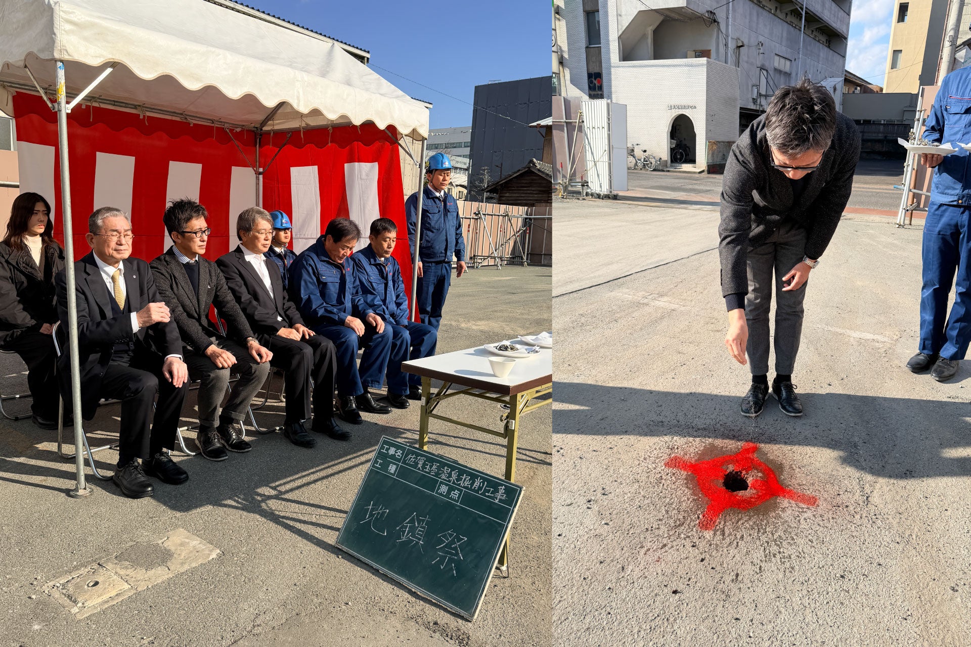 1月7日(水)に佐賀玉屋新本館温泉掘削の地鎮祭を行いました。湧出した温泉は、将来のホテル機能だけでなく百貨店空間にも活用し、佐賀市中心部で“温泉文化を楽しめる街の拠点”を目指します。