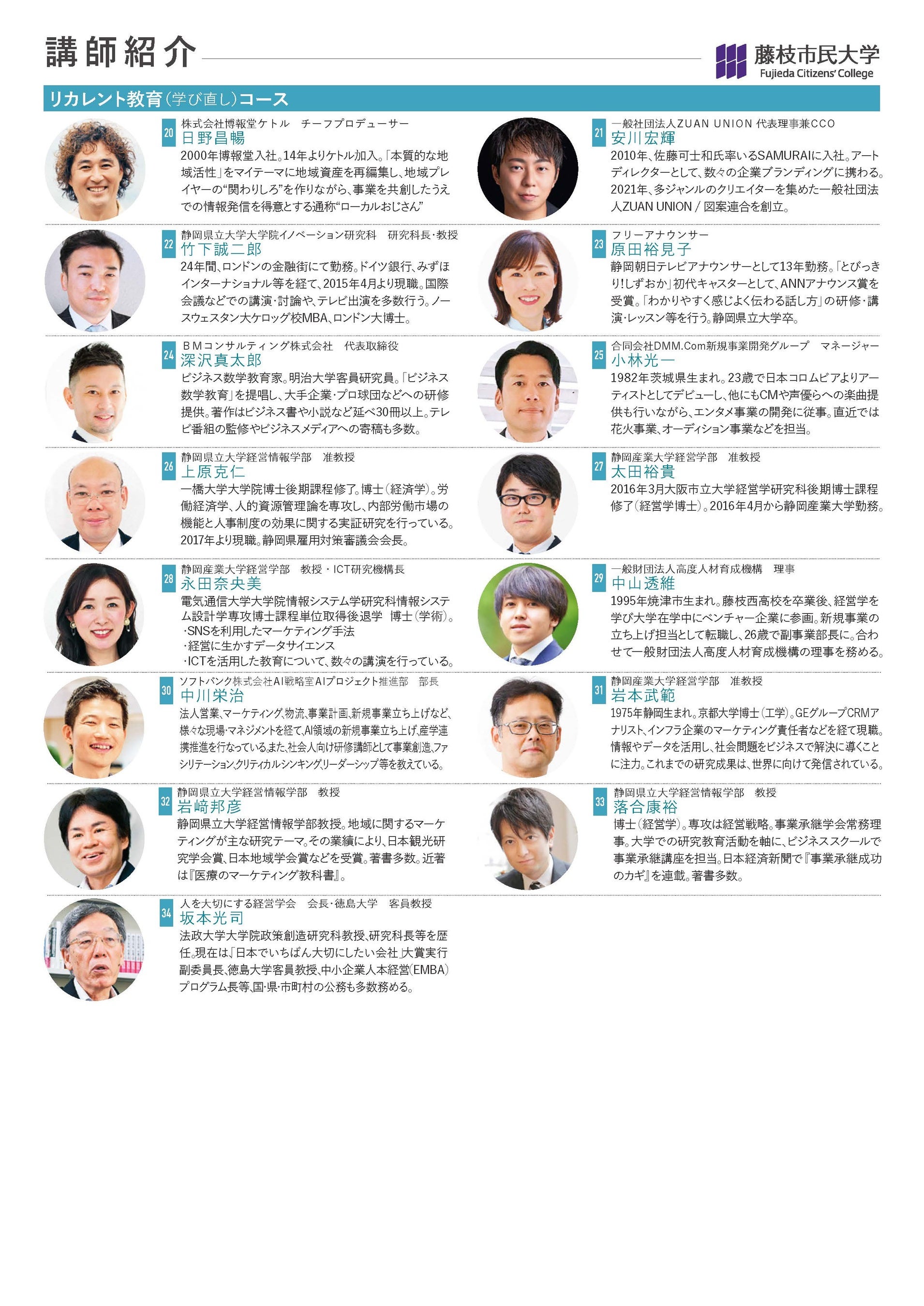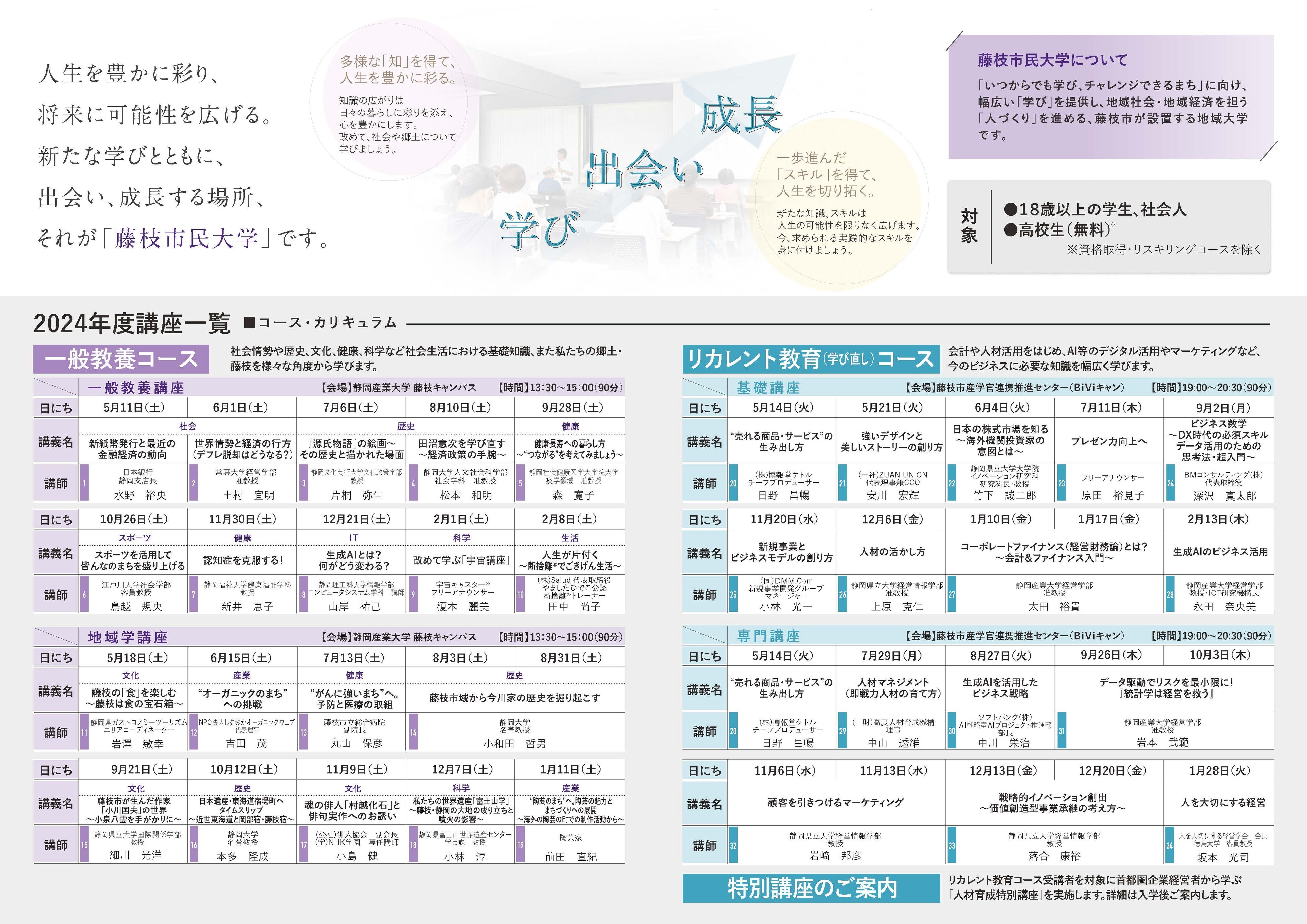 ・受講生の要望から仕事と学びの両立支援のため「リカレント教育コース」の開始時間を30分後倒し(午後6時30分開始→午後7時開始)します。