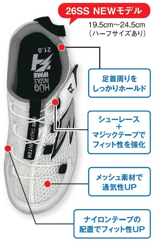 2026年春夏の新商品では、新たにジュニアモデルが新登場。また、従来のキッズモデルもサイズ展開を21.0cmまでに拡大し、より多くの子どもたちに、お使いいただけるラインナップになりました。