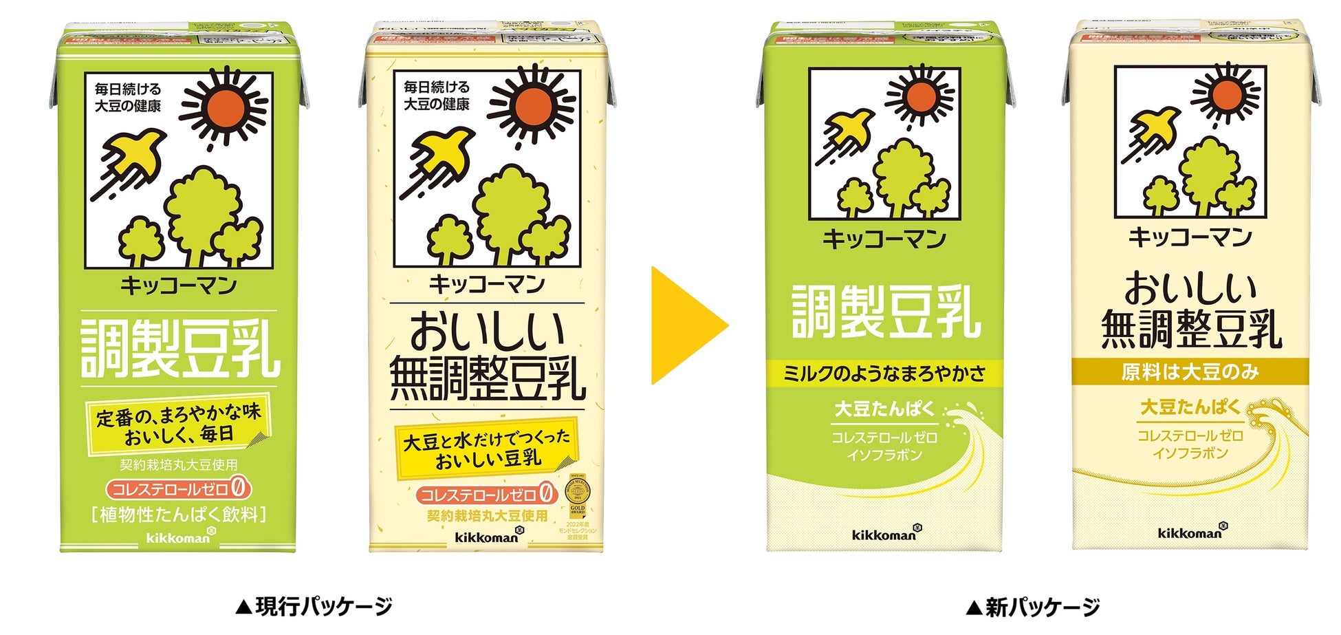 キッコーマンの豆乳シリーズは、2025年2月下旬(予定)以降、定番の「調製豆乳」「おいしい無調整豆乳」をはじめ、「豆乳飲料 麦芽コーヒー」「豆乳飲料 紅茶」など豆乳飲料を含めた商品を、新パッケージでの製造に順次切り替えます。(一部商品除く)