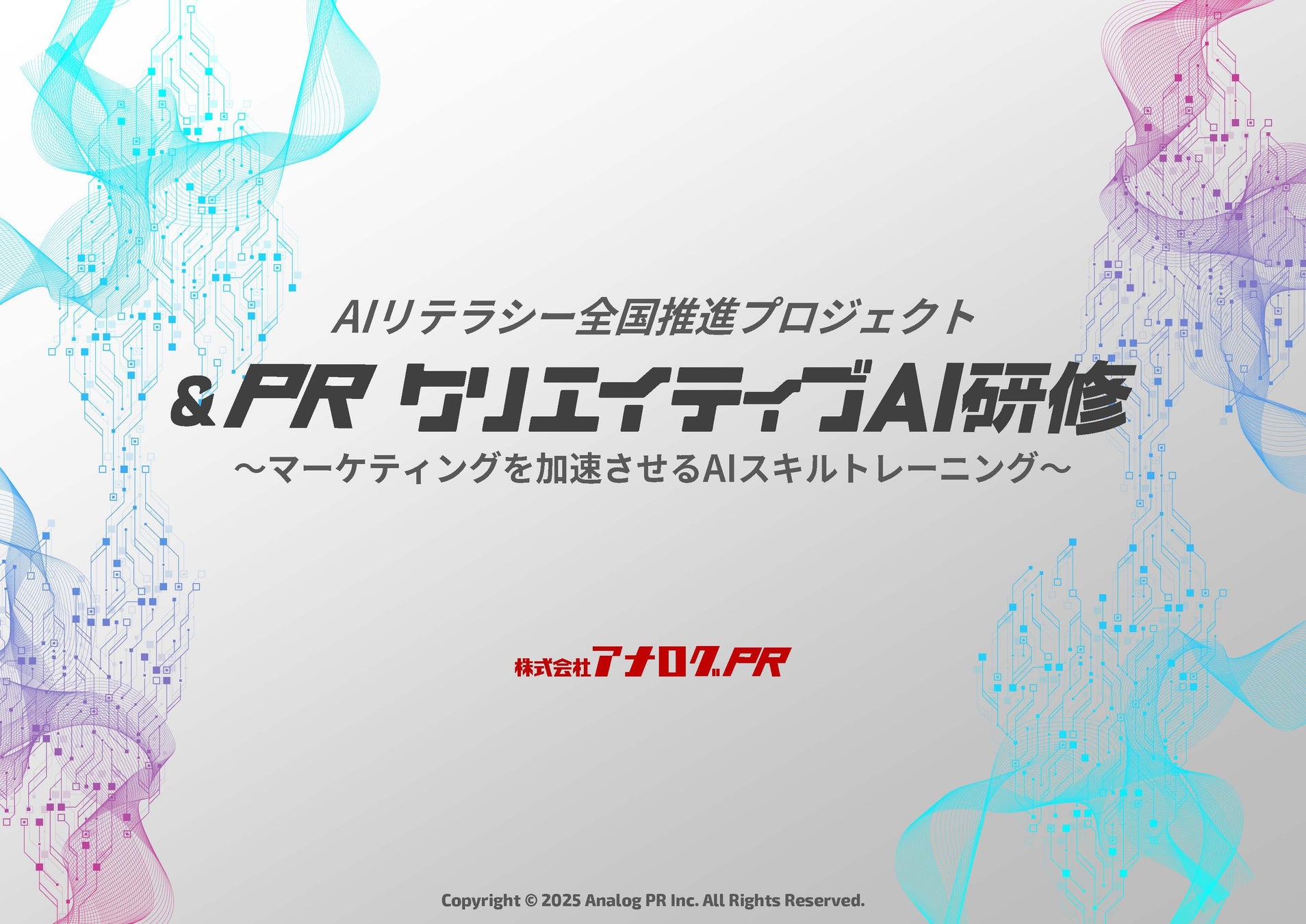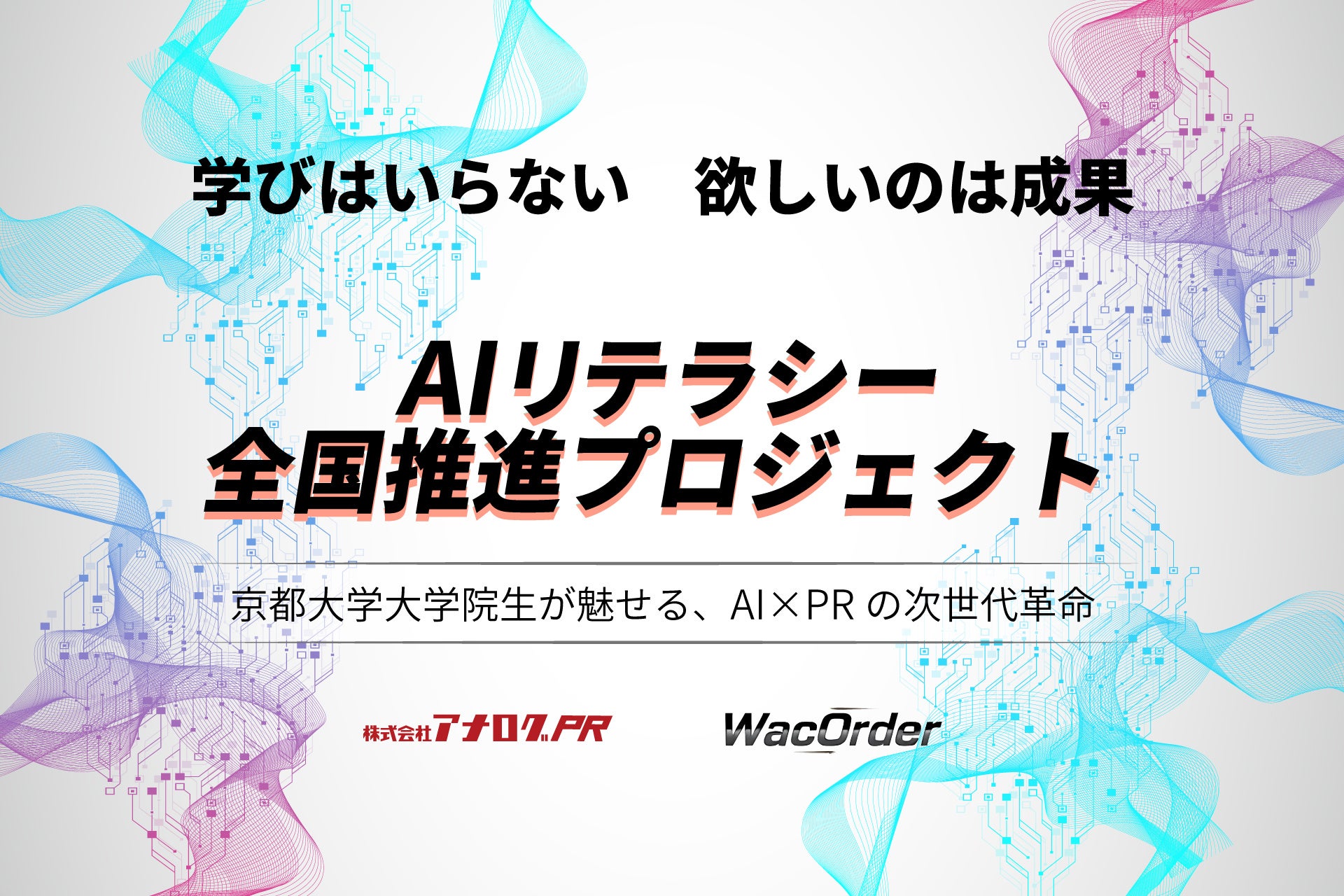 株式会社アナログPR(本社:東京都、代表取締役:松浦啓介)は、株式会社WacOrder(本社:東京都、代表取締役:前田悠馬)と共同で、企業の従業員や学生を対象とした「AIリテラシー全国推進プロジェクト」 を開始します。本プロジェクトでは、AI技術の基礎から実践的な活用方法まで学べる研修を提供し、日本全体のAI活用力を向上させます。