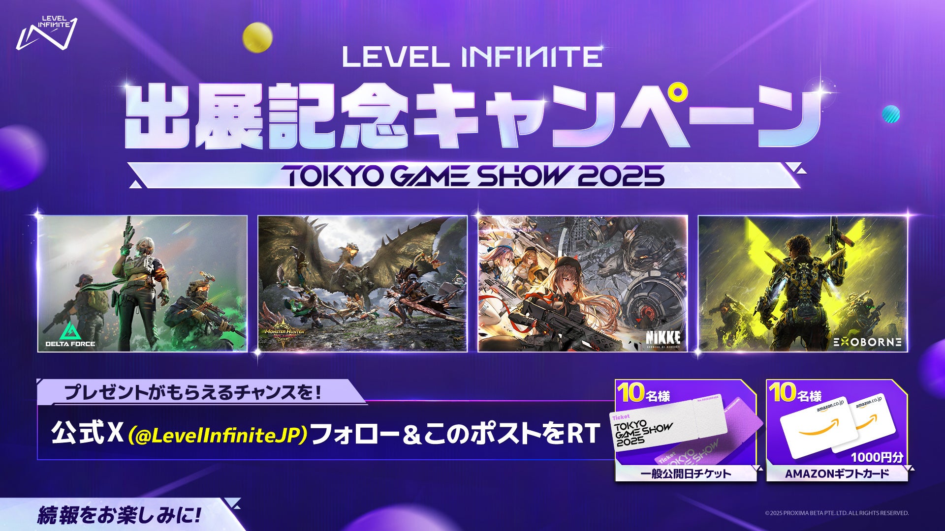 Level Infiniteが TGS2025 に出展!『モンスターハンターアウトランダーズ』、『勝利の女神:NIKKE』 、『EXOBORNE』 、『Delta Force』など会場限定の体験が満載