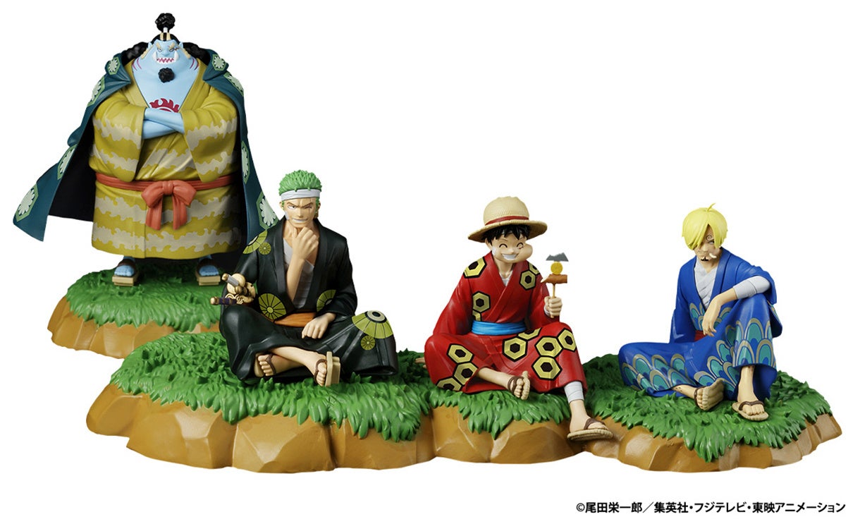 ~ルフィ、ゾロ、サンジ、ジンベエの服装や装飾、着物の柄を再現したフィギュアがセットになってプレミアムバンダイで予約開始~