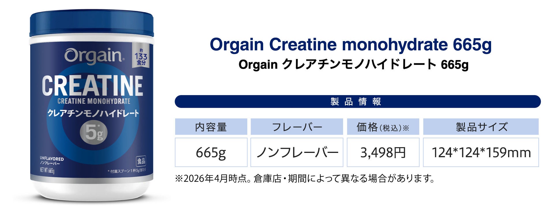 ネスレ日本株式会社(本社:兵庫県神戸市、代表取締役 社長 兼 CEO:深谷 龍彦、以下「ネスレ日本」)は、2026年4月14日(火)より、コストコホールセールジャパン株式会社(※1)(本社:千葉県木更津市、日本支社長:ケリー・ハント)が展開する会員制倉庫型店の一部倉庫店、ならびに通販ストア「コストコオンライン」にて、「Orgain クレアチンモノハイドレート」の販売を開始します。