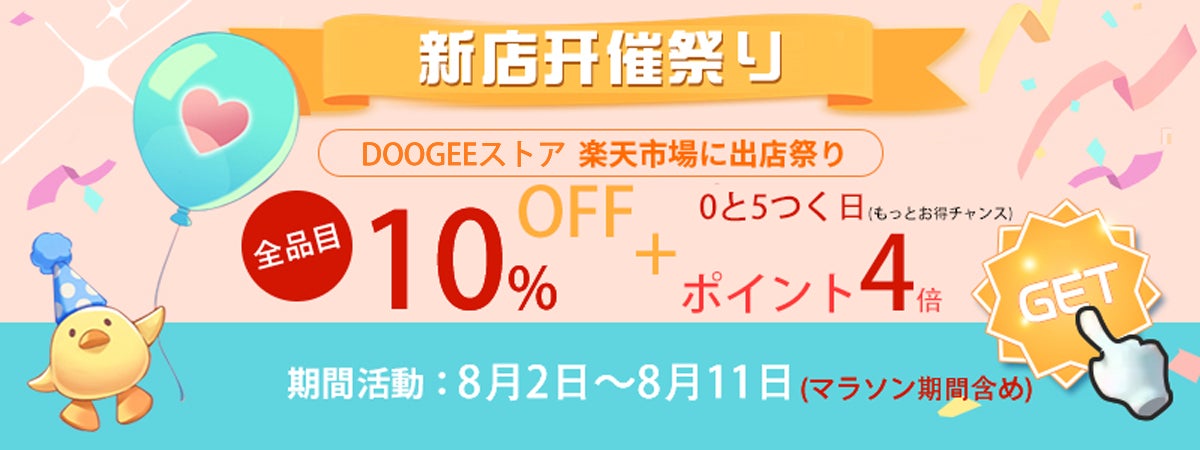 この素晴らしい機会にDOOGEE楽天市場店で最新のテクノロジーを手に入れ、スマートな生活を楽しみましょう。開店祭の特別オファーは8月11日までの期間限定ですので、お見逃しなく!