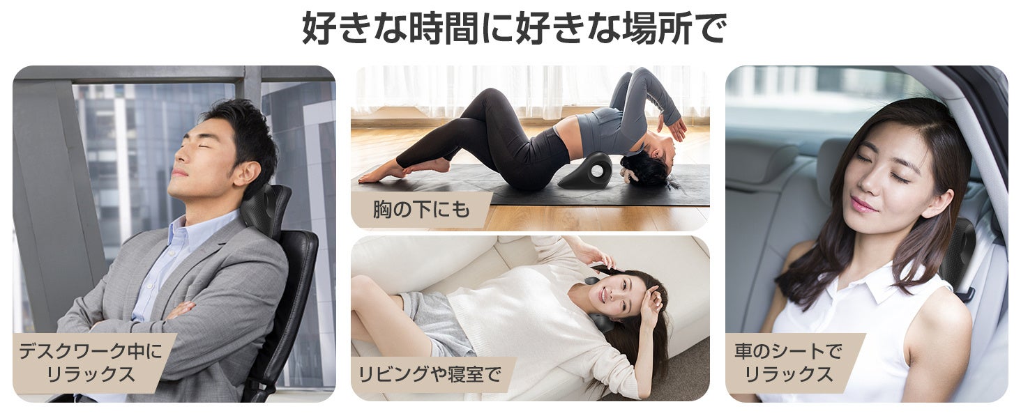 1日たったの8分、寝転がるだけで手軽に効果を実感。デスクワーク中やお風呂上り、スマートフォンを操作している間など、好きな時間にご利用いただけます。初めて使う場合は、短い時間からスタートして、徐々に慣らしていくことをお勧めします。