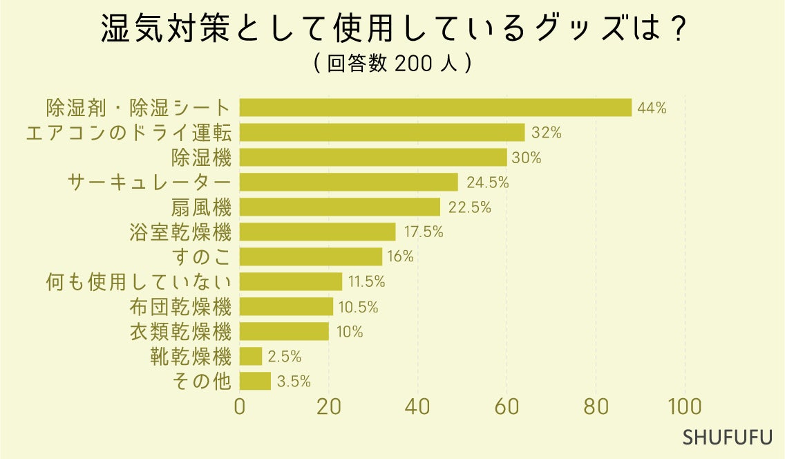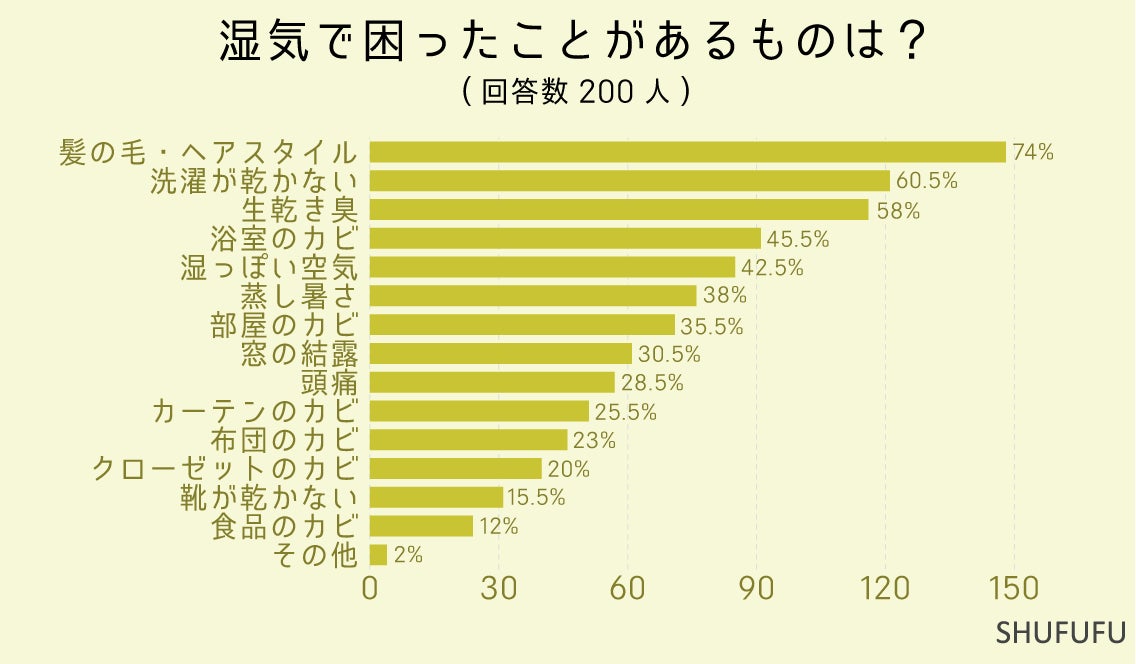 女性200人に「湿気対策」に関するアンケート調査を行った所、