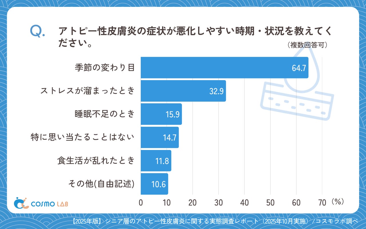 「季節の変わり目」(64.7%)が突出し、悪化要因として環境変化が最も強く意識されています。