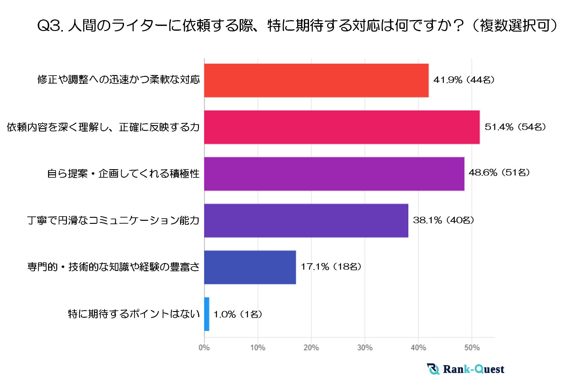 調査結果➂:人間のライターに依頼する際、特に期待する対応は何ですか?※複数選択可(注4)