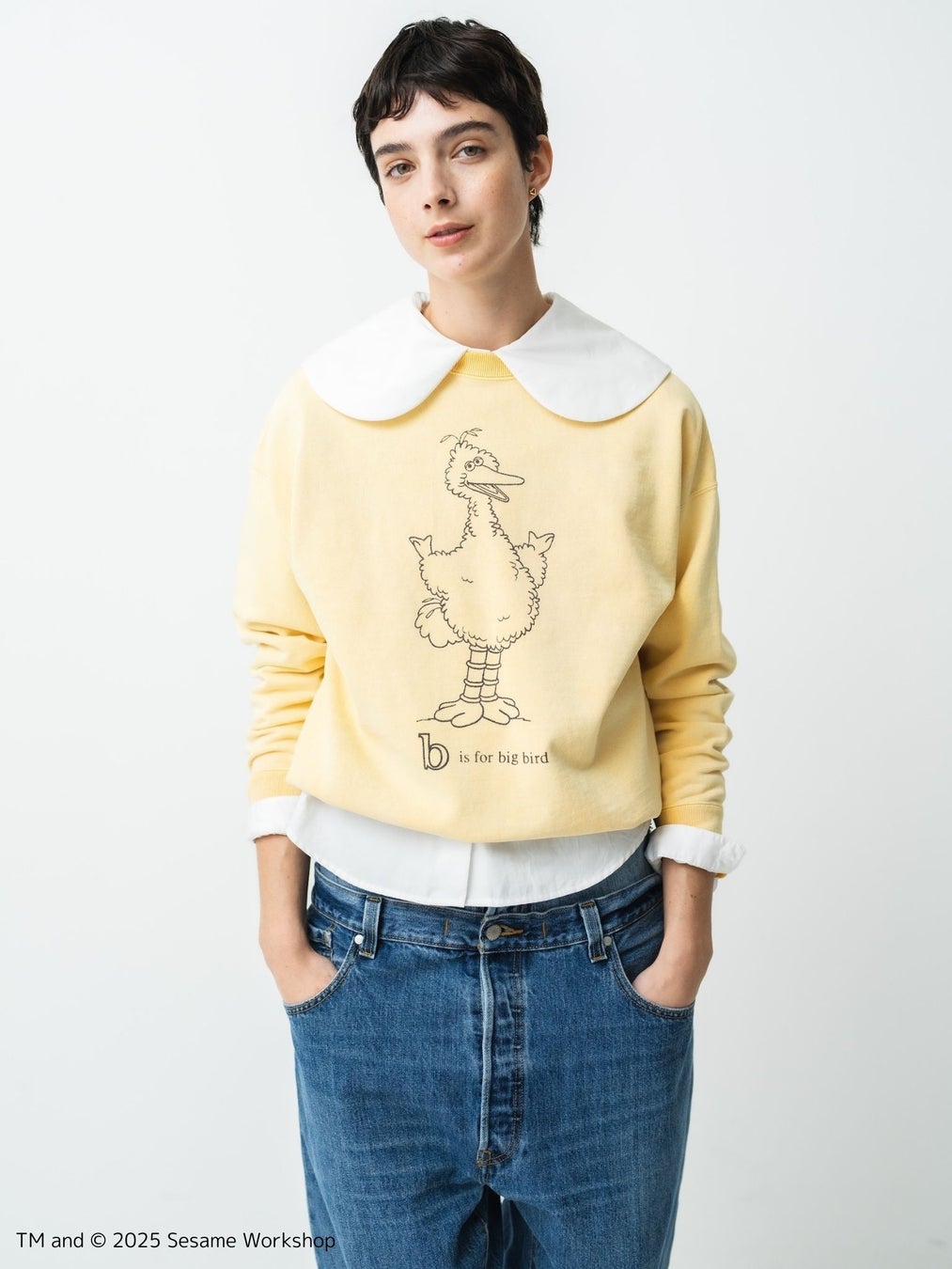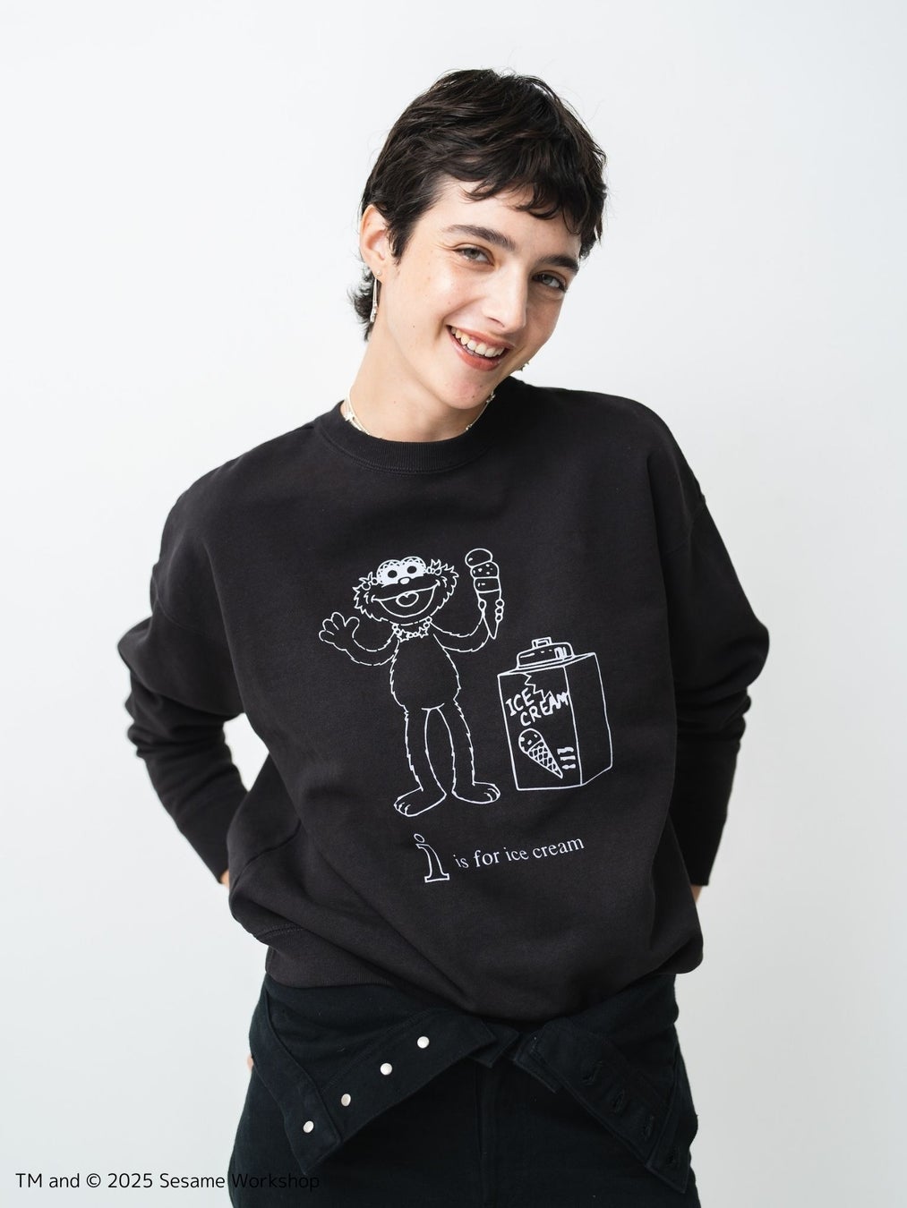 レディーススウェットには歌とダンスが好きなモンスター「ゾーイ」や少しおませな6歳の女の子「プレーリー・ドーン」、また「エルモ」や「クッキーモンスター」など象徴的なキャラクターが勢ぞろいした全5柄が登場。ヴィンテージスウェットを彷彿とさせる独特の風合いやカラートーンにこだわり、大人のこなれたカジュアルスタイルが完成するアイテムに仕上げました。
