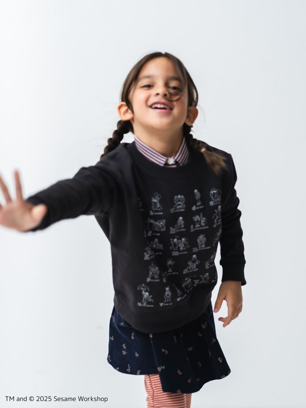 キッズスウェットには26のアルファベットと共にセサミストリートの仲間たちがボディーいっぱいに広がり、愉快に楽しくアルファベットも学べるデザインに。バックには今回のコラボレーションのためだけに作られた特別なロゴマークが施されています。