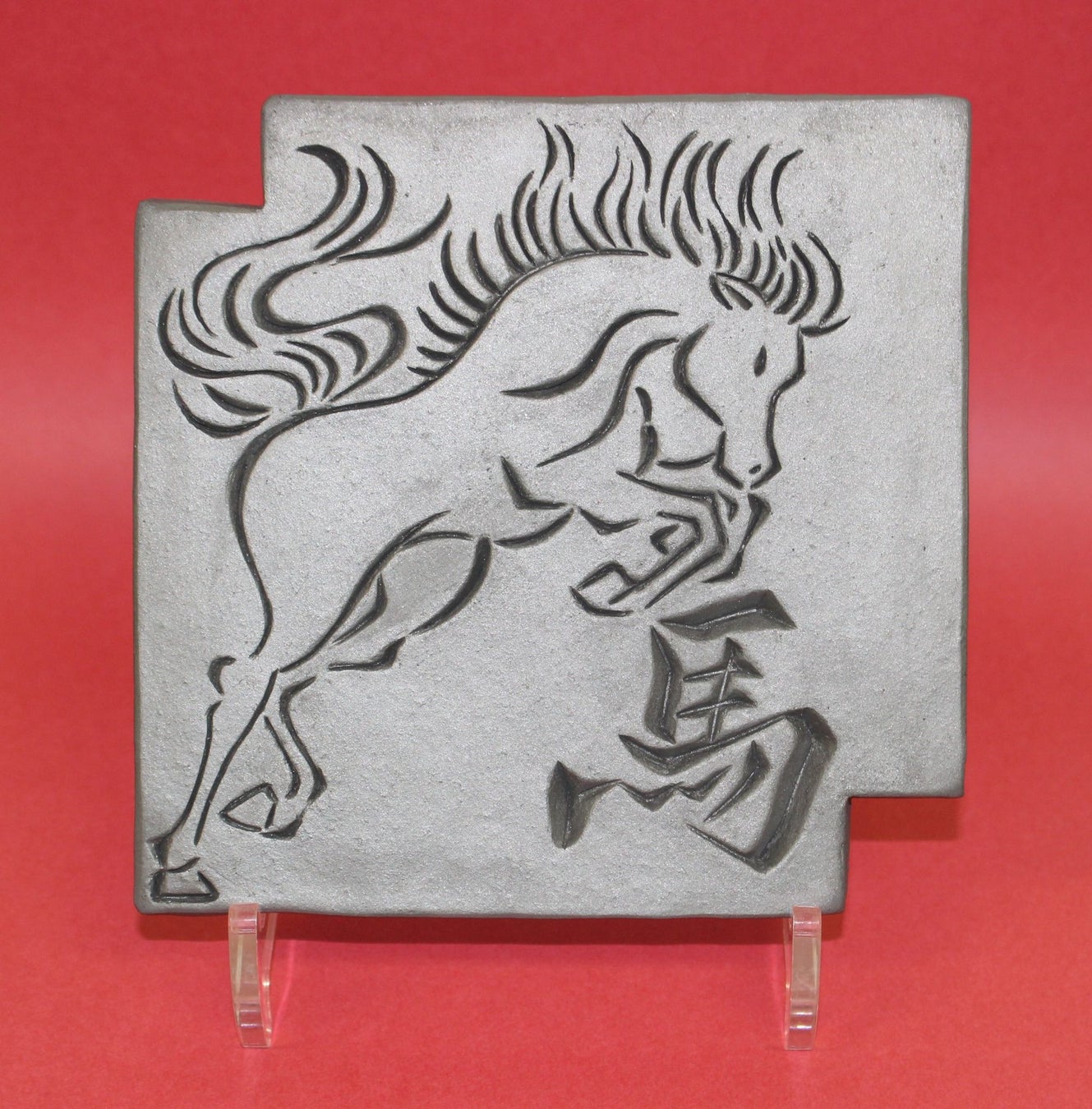 瓦と同じ粘土を彫って、オリジナルの干支瓦を作ります。いぶし瓦の縁起物を飾って、新しい年をお迎えしましょう。