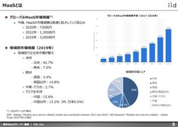 ・地域別の市場規模では北米市場が最大。今後、MaaSの市場規模は急速に拡大していく見込み。