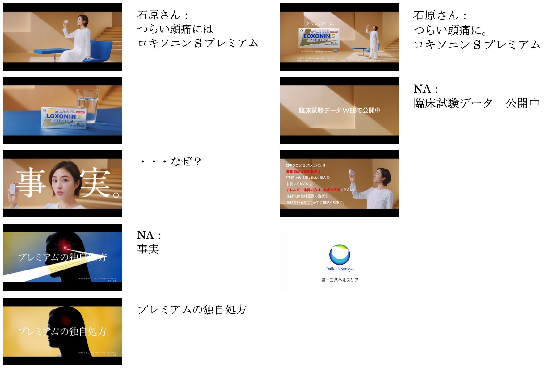 ロキソニンSプレミアム『事実。プレミアムの独自処方』篇:https://www.youtube.com/watch?v=coeN7MG3Foo